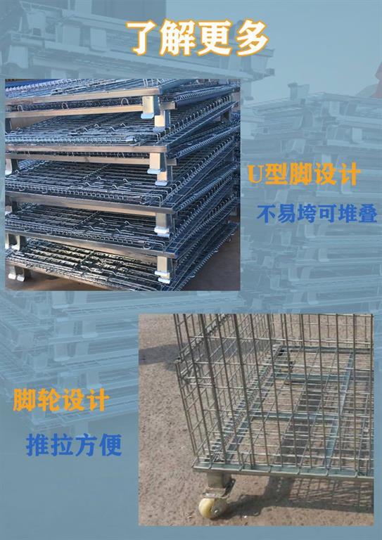 又稱(chēng)折疊周轉箱都是采用采用全新料,U型腳設備(bèi),不(bú)易垮塌,可以堆疊(dié),節省空(kōng)間(jiān)。科(kē)學的腳輪設備,移動(dòng)方便,我(wǒ)廠支持定做多種尺(chǐ)寸的倉儲籠。