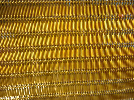 方格裝飾網片采(cǎi)用_不(bú)鏽鋼,鋁合金,黃銅,紫銅等(děng)合金材料,經特殊工藝編(biān)製而成,因其具有金屬絲和金屬線條_的柔韌性和光澤度,也直接造_了不同的現在(zài)金屬裝飾的藝(yì)術(shù)風格,掛簾顏色多變,在光的折射下,想象空間_,美麗盡收眼底。