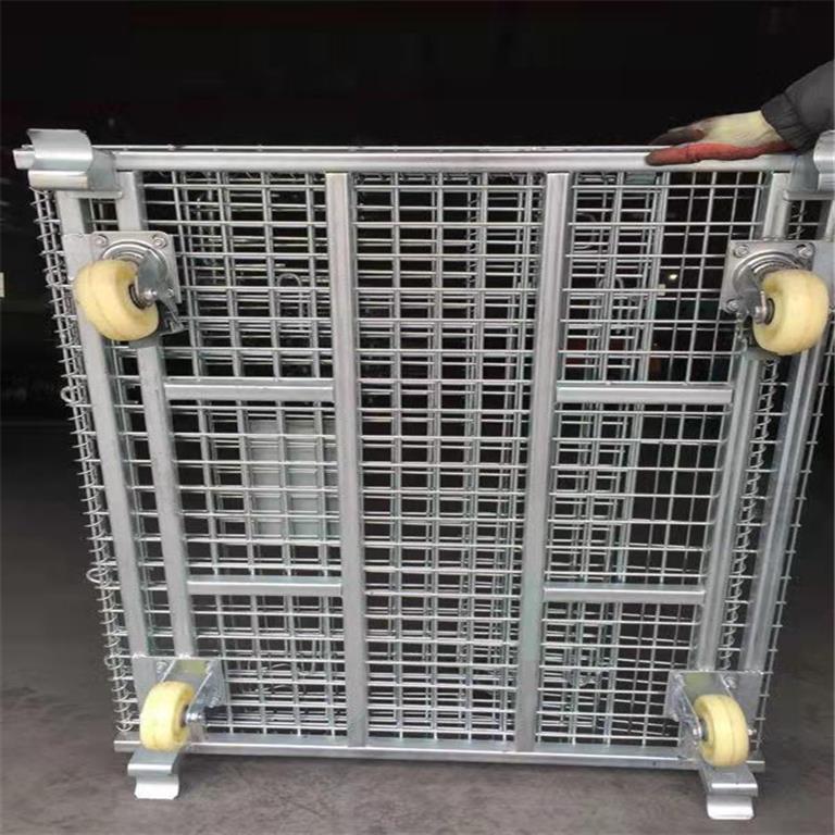 腳輪倉儲籠底部配有輪子,一般(bān)兩個萬向輪,兩(liǎng)個帶刹車輪,運轉靈活輕便,多(duō)適用於生產車間。