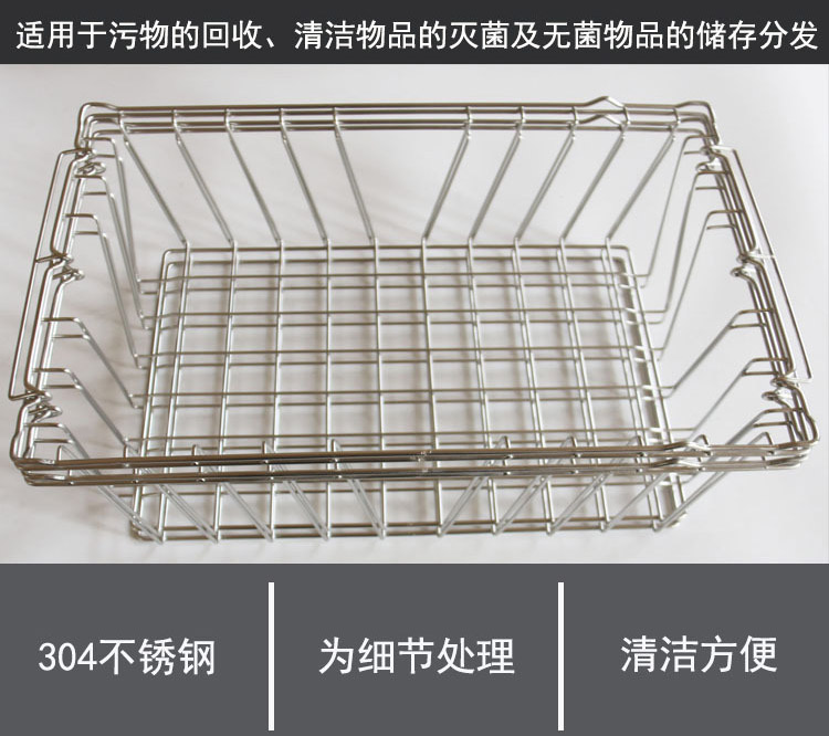 承載消毒藍,標準籃筐標準籃筐小型籃筐 (ISO)標準籃筐外(wài)形尺寸:535x380x195 535x380x100,改不(bú)鏽鋼消毒筐采(cǎi)用全不鏽鋼材質(zhì); 存(cún)放及運輸物品方(fāng)便;可有效的避免手(shǒu)接觸無菌物品造成(chéng)的汙(wū)染。